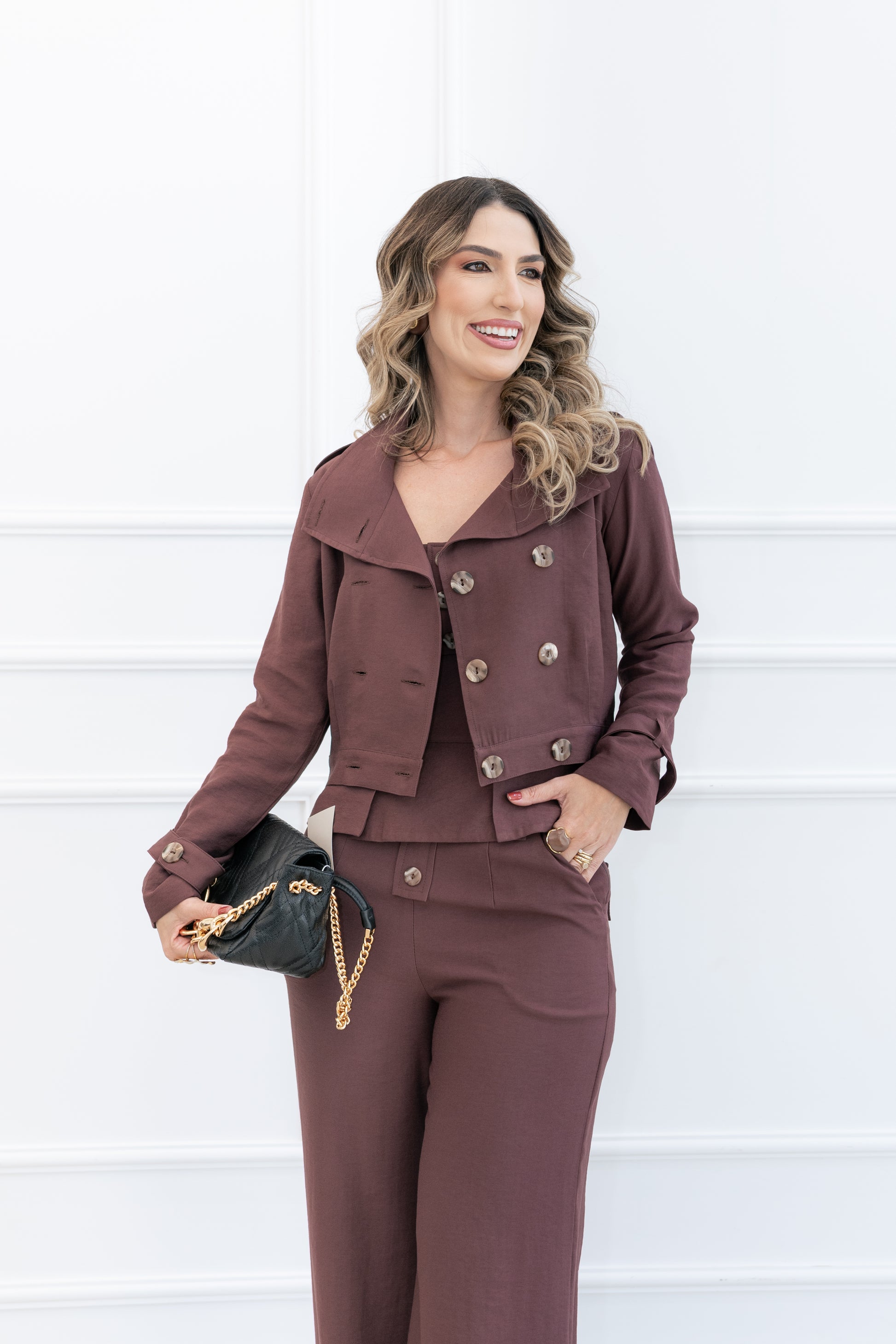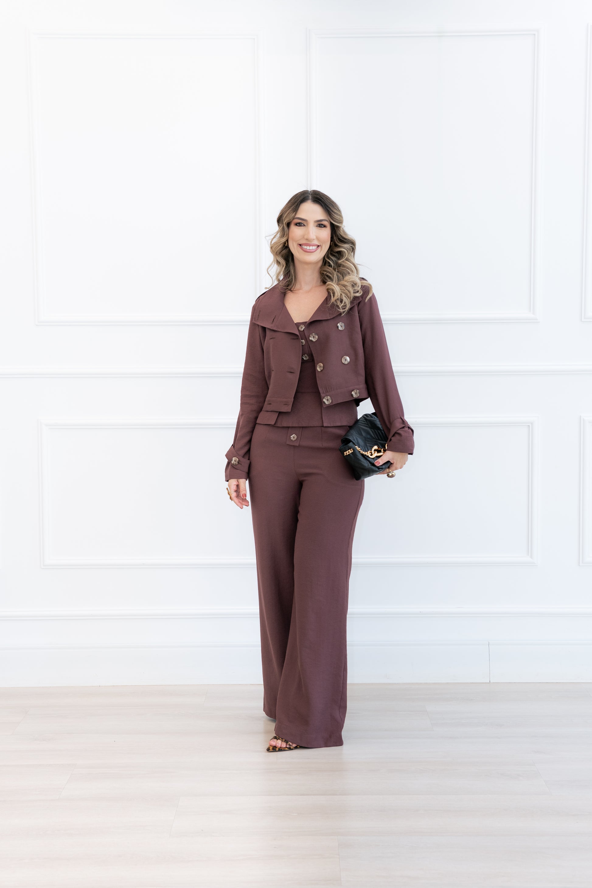 Calça pantalona, cos com passantes, zíper na lateral, bolso faca . Detalhe dos botões decorativo na frente . É a escolha certa para quem busca conforto e elegância em uma única peça !!!