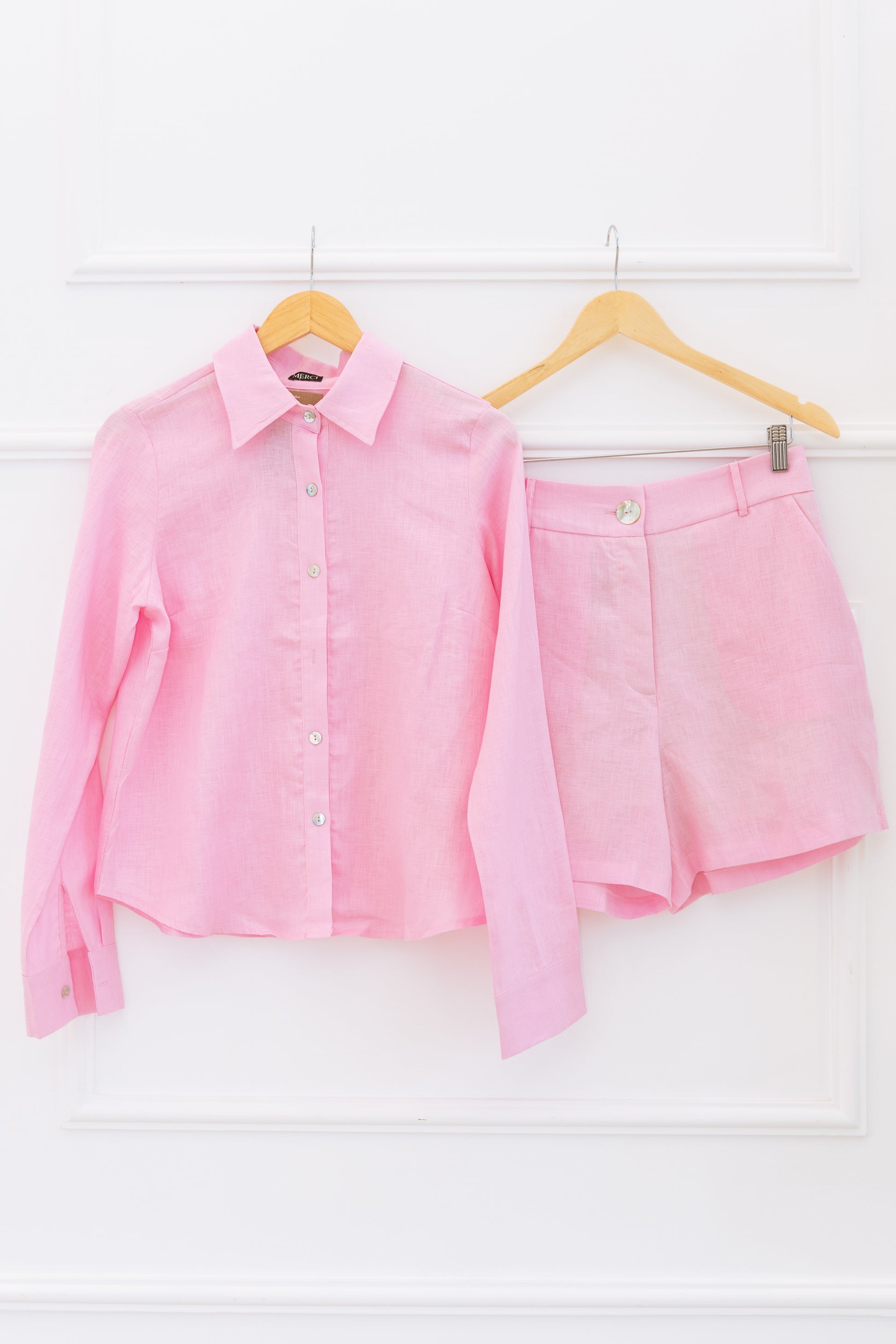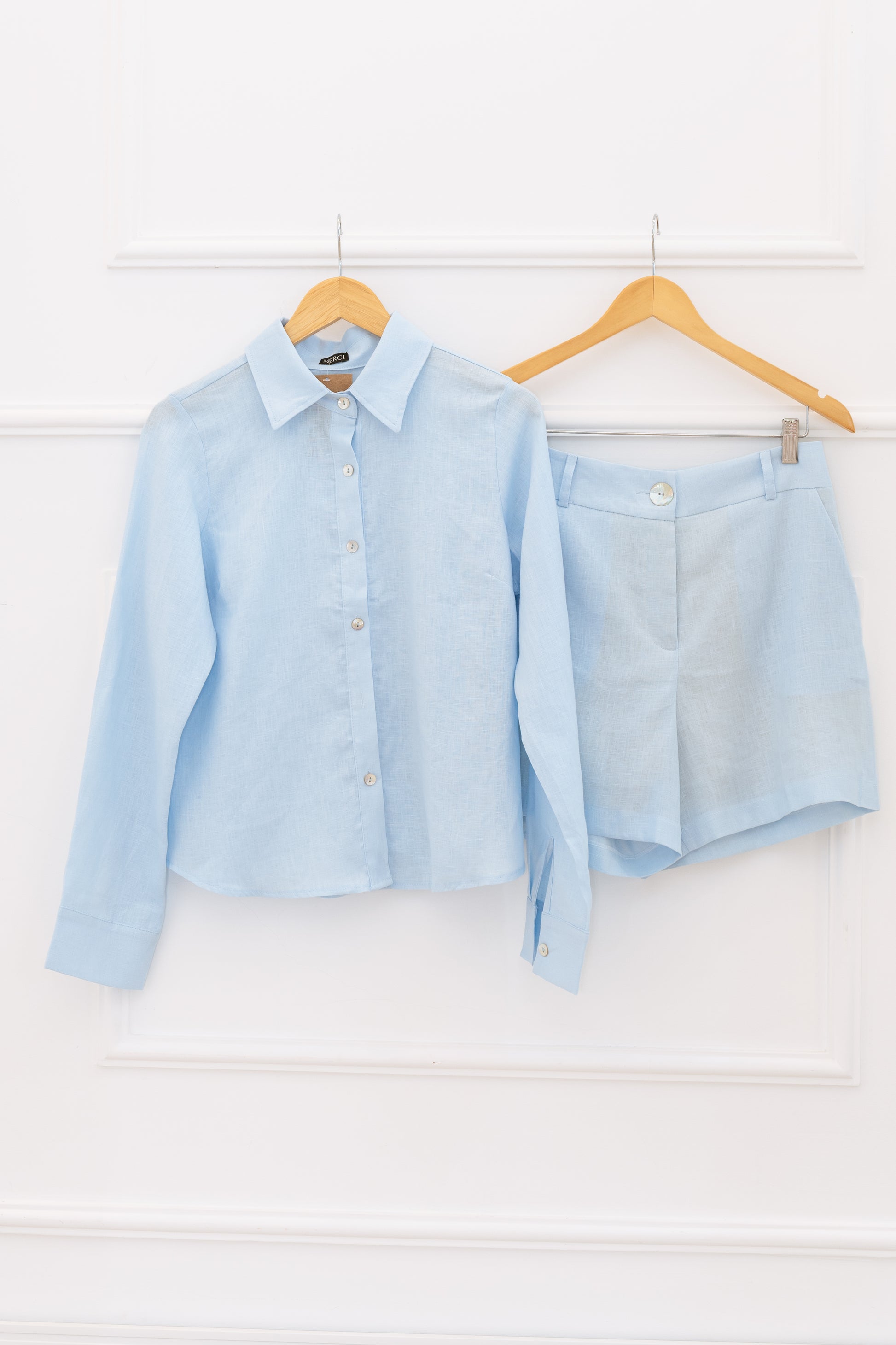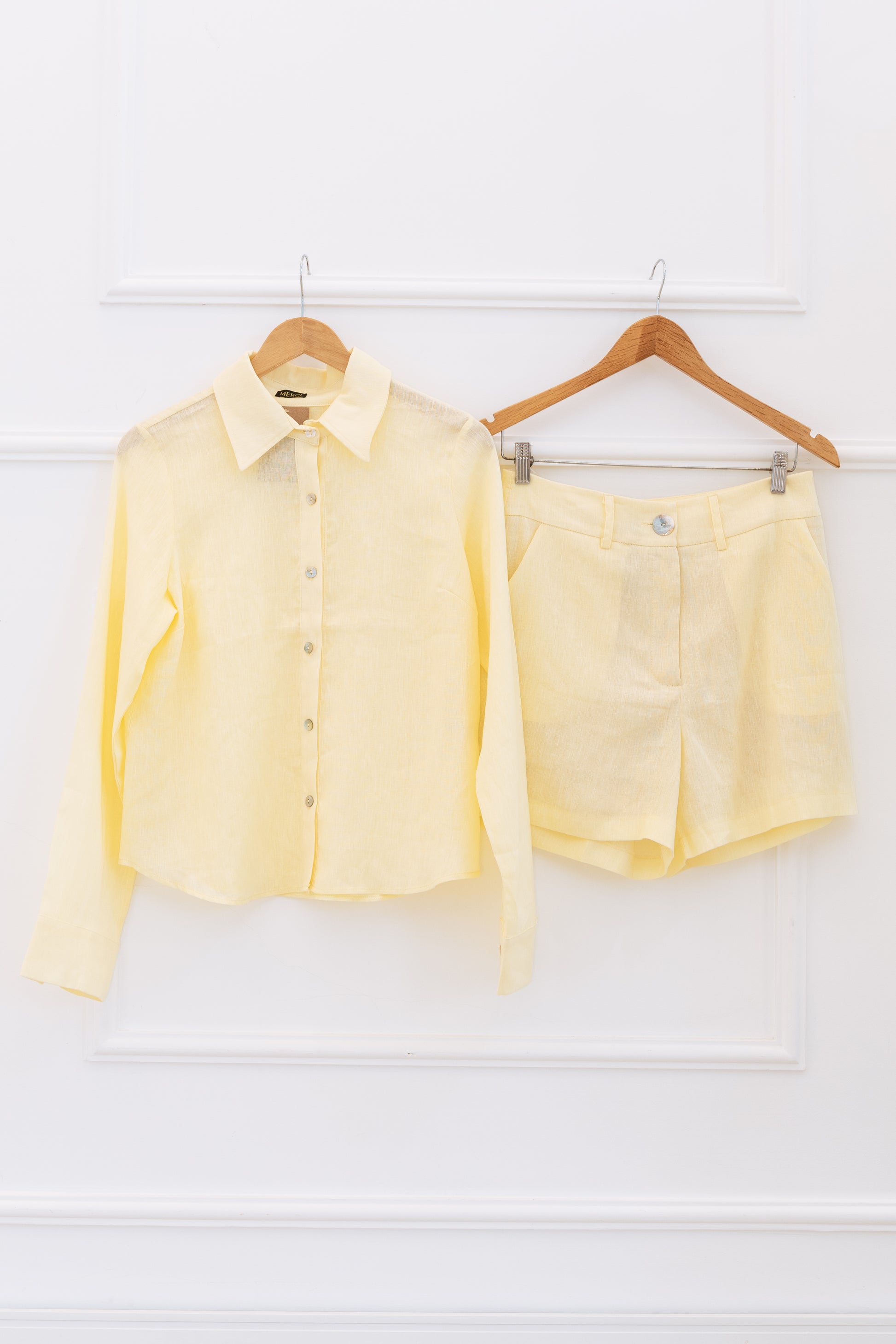 Conjunto Luara 100% linho, com camisa de botões em madrepérola!! Bermuda com bolsos faca e comprimento médio , todo forrado!! Ideal para um look leve, elegante e sofisticado !!