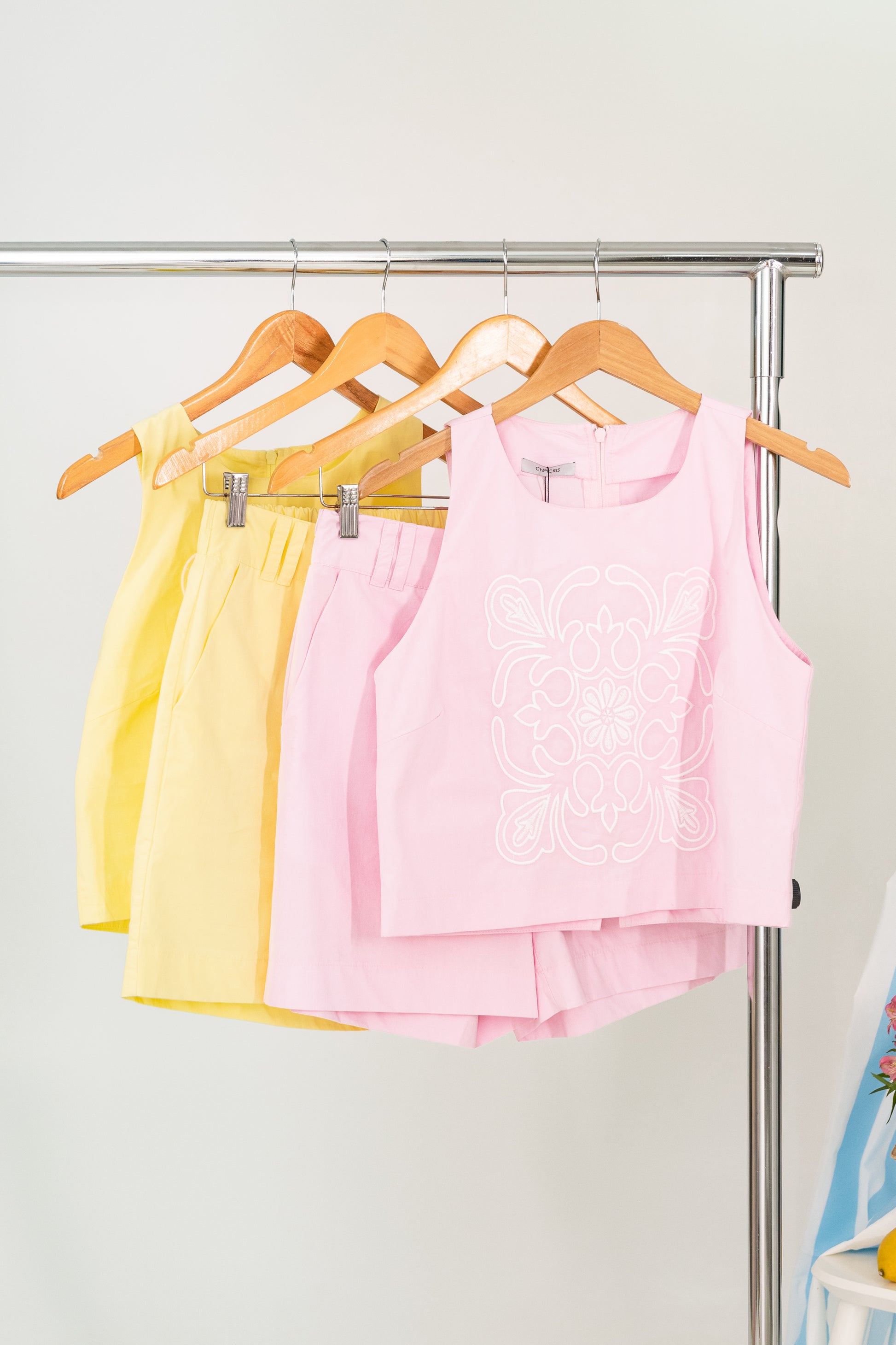 Este conjunto é ideal para o dia a dia, equilibrando conforto e estilo. A blusa apresenta um toque feminino com o bordado, enquanto a bermuda oferece ajuste e praticidade, tornando-o perfeito para diversas ocasiões.