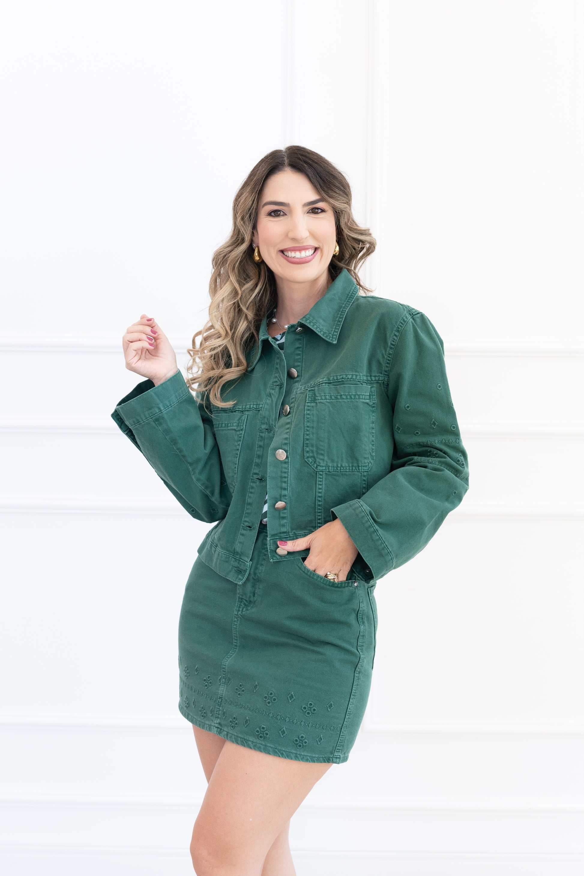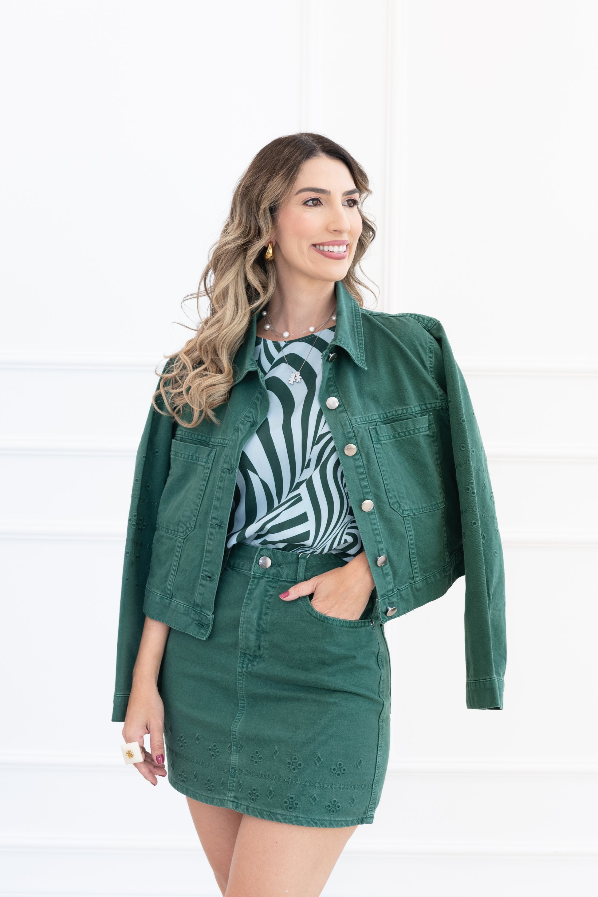 - Saia Lêz a Lez curta, com um design que remete ao estilo casual.