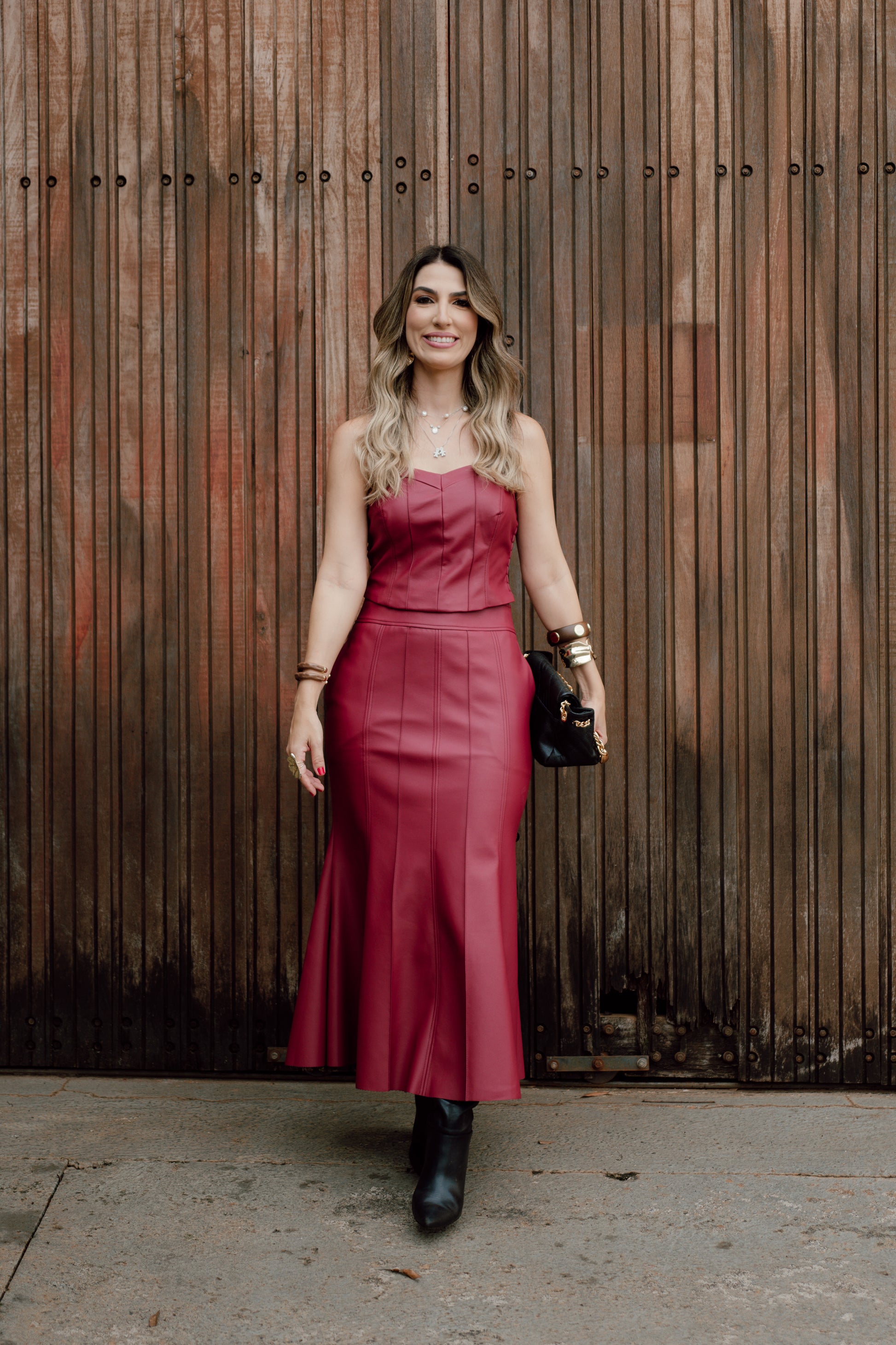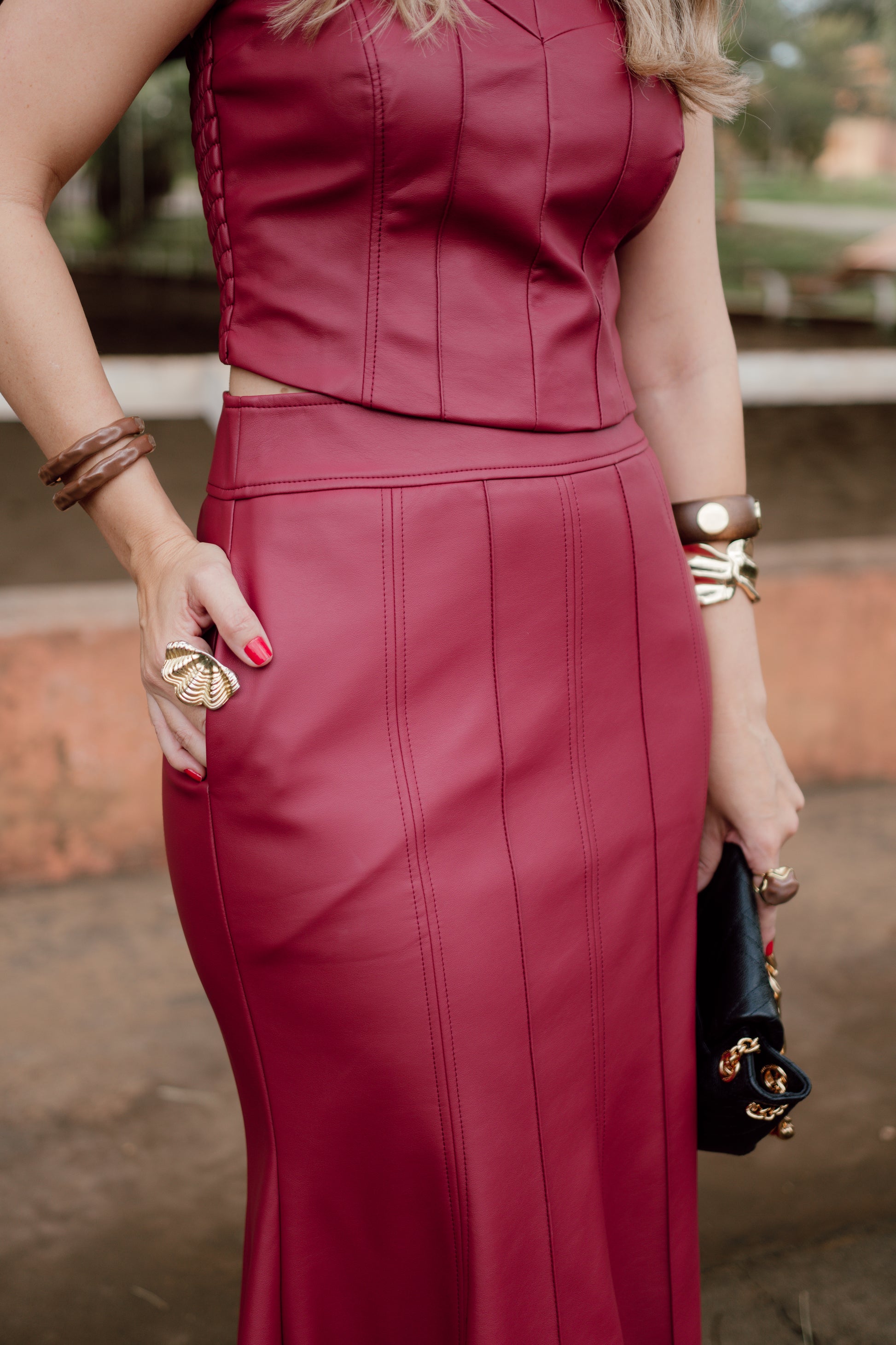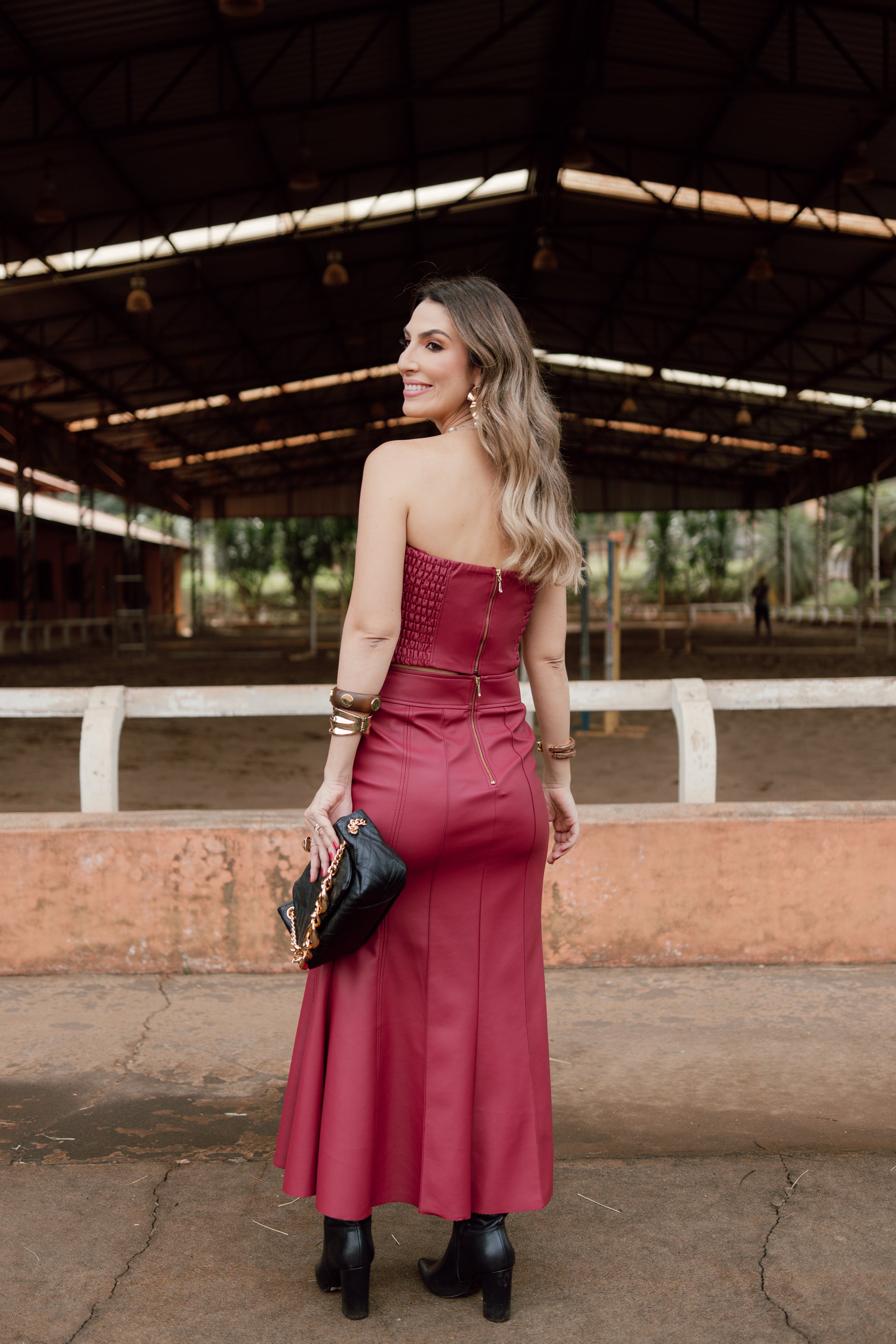 Saia cos largura médio, com zíper parte de trás, a modelagem sutilmente ajustada com recortes verticais. Abre um leve evasê ate a barra criando o icônico shape sereia que valoriza a silhueta !!!